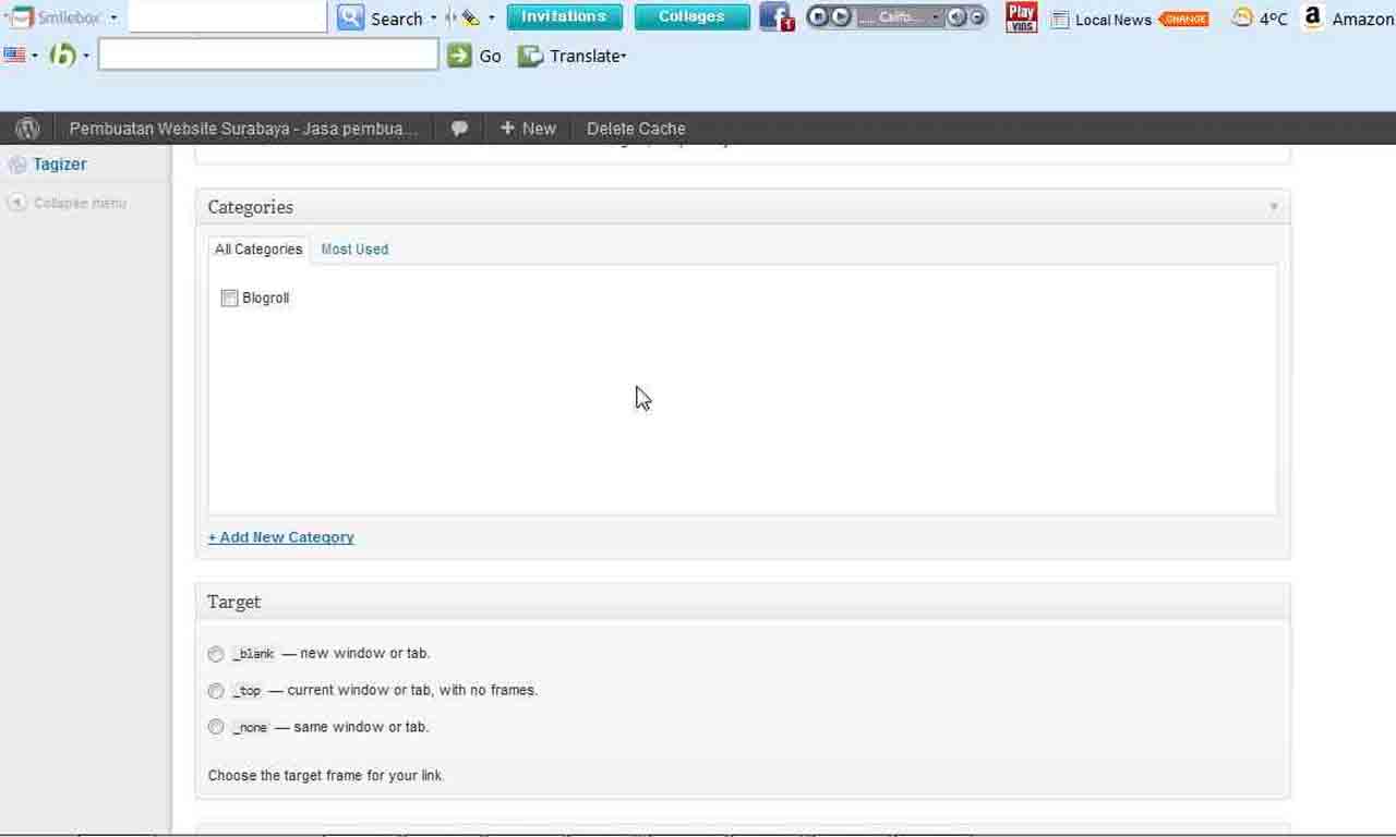 4.Anda juga dapat membuat pengaturan kategori link . Add New Category untuk membuat kategori Link baru, atau centang jika sudah ada kaegori yang diinginkan.