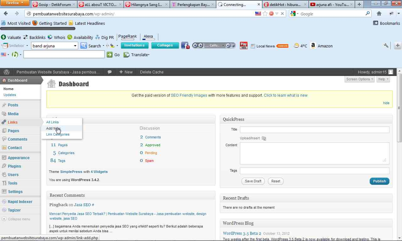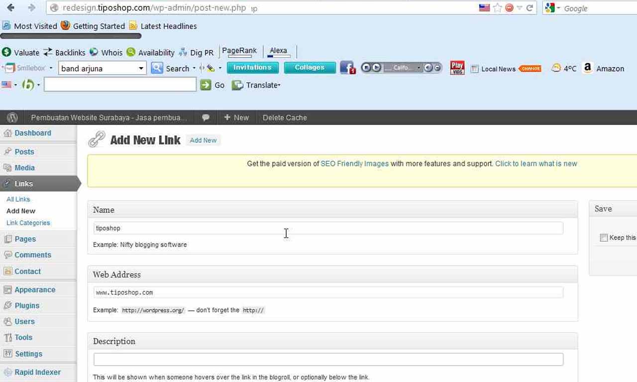 Posted in Mengelola Wordpress | 0 commentsLink atau tautan adalah daftar website yang menjadi rujukan pengguna dalam berinteraksi dengan pengguna atau situs lain. Link akan ditampilkan dalam halaman situs WordPress dengan navigasi yang diatur pada widgets.